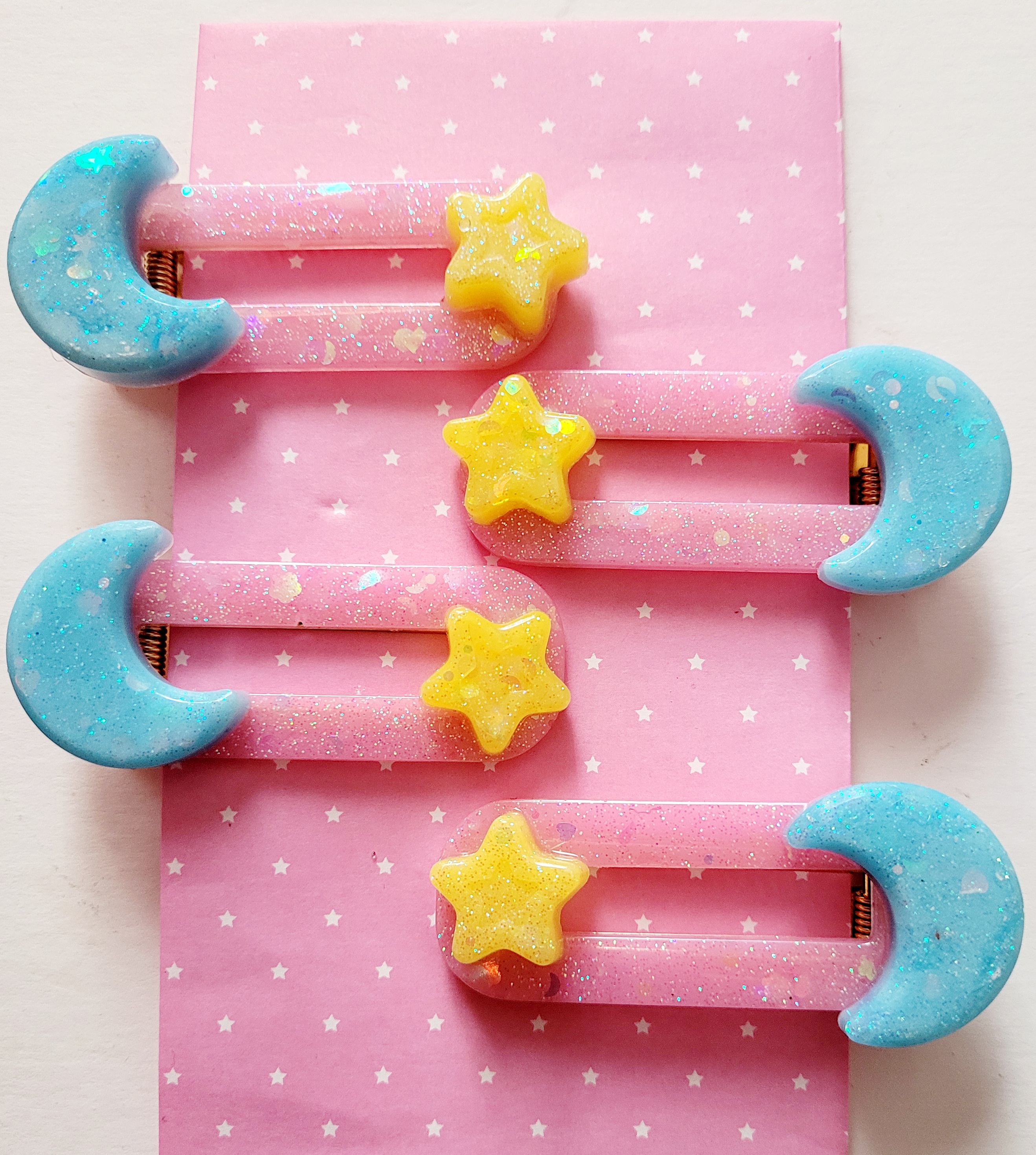 Each hairclip has a gold colored, alligator clip on the back of each. Suitable for most hair types.